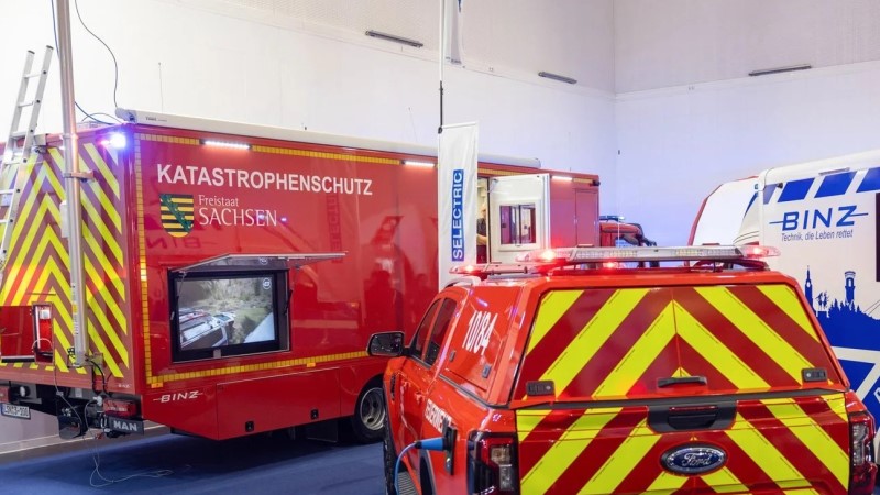 Auf der Messe FLORIAN in Dresden wurde ein neuer Einsatzleitwagen von der Firma BINZ vorgestellt Der ELW2 ist für die Einsatzleitung und die operative-taktische Führung in Großschadenslagen und Katastrophenfällen.