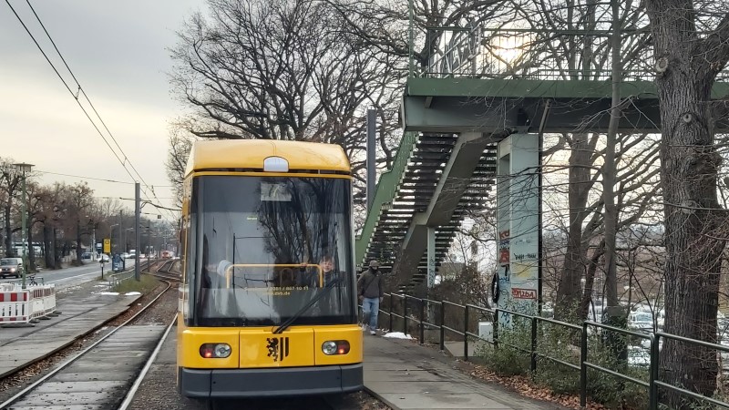 Ein Teil der in die Jahre gekommenen Fußgängerbrücke über die Königsbrücker Straße wurde bereits abgetragen.