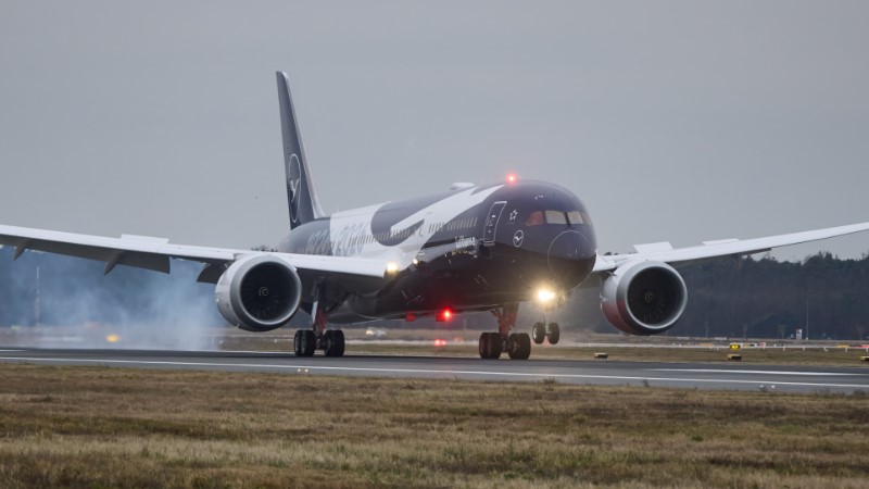 Sie ist gelandet! Die Boeing 787-9 mit der imposanten Sonderlackierung zum 100-jährigen Gründungsjubiläum der ersten Lufthansa ist am Dienstag in Frankfurt eingetroffen.