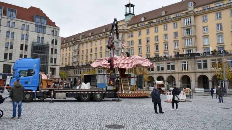 Der Aufbau des 591. Dresdner Striezelmarktes hat begonnen. In dieser Woche werden die Markierungen für die Standorte der Marktstände auf dem Altmarkt aufgebracht.