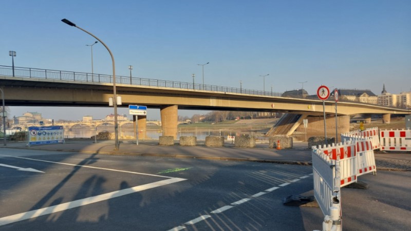 Das Terrassenufer in der Dresdner Altstadt ist seit dem Teileinsturz der Carolabrücke im September 2024 für den Verkehr gesperrt gewesen.Am Mittwochmittag soll es nun wieder freigegeben werden