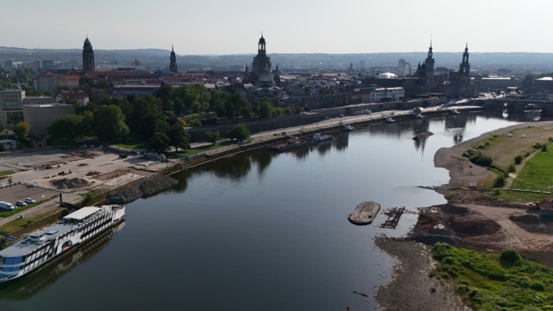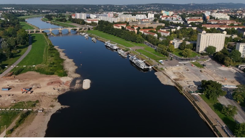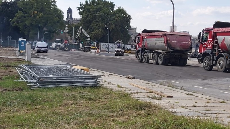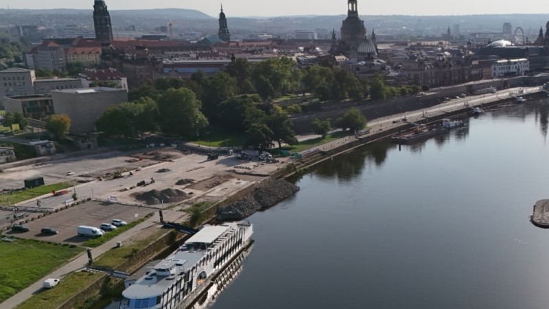 Seit dem Mittwoch um 13 Uhr ist der Elberad- und Fußweg am Neustädter Elbufer im Bereich der Carolabrücke wieder freigegeben. Weiter wird noch an der Fahrrinne sowie am Busparkplatz gearbeitet.