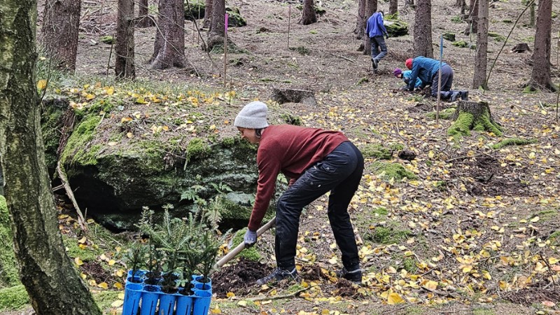 Vom 19. bis 25. Oktober sind fast 20 Freiwillige mit dem Bergwaldprojekt in der Nationalparkregion Sächsische Schweiz im Einsatz. Die Teilnehmenden führen dort gemeinsam u. a. Pflegearbeiten im Wald durch.