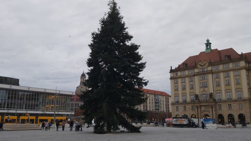 Am Sonnabend, 1. November 2025, wird der Striezelmarktbaum gefällt und dann auf dem Dresdner Altmarkt aufgestellt..