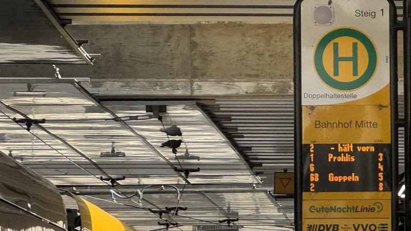 Der Bahnhof Mitte gehört zu den stark frequentierten ÖPNV-Umsteigepunkten in Dresden. An den Anzeigetafeln wird angezeigt, auf welcher Position das Fahrzeug hält.